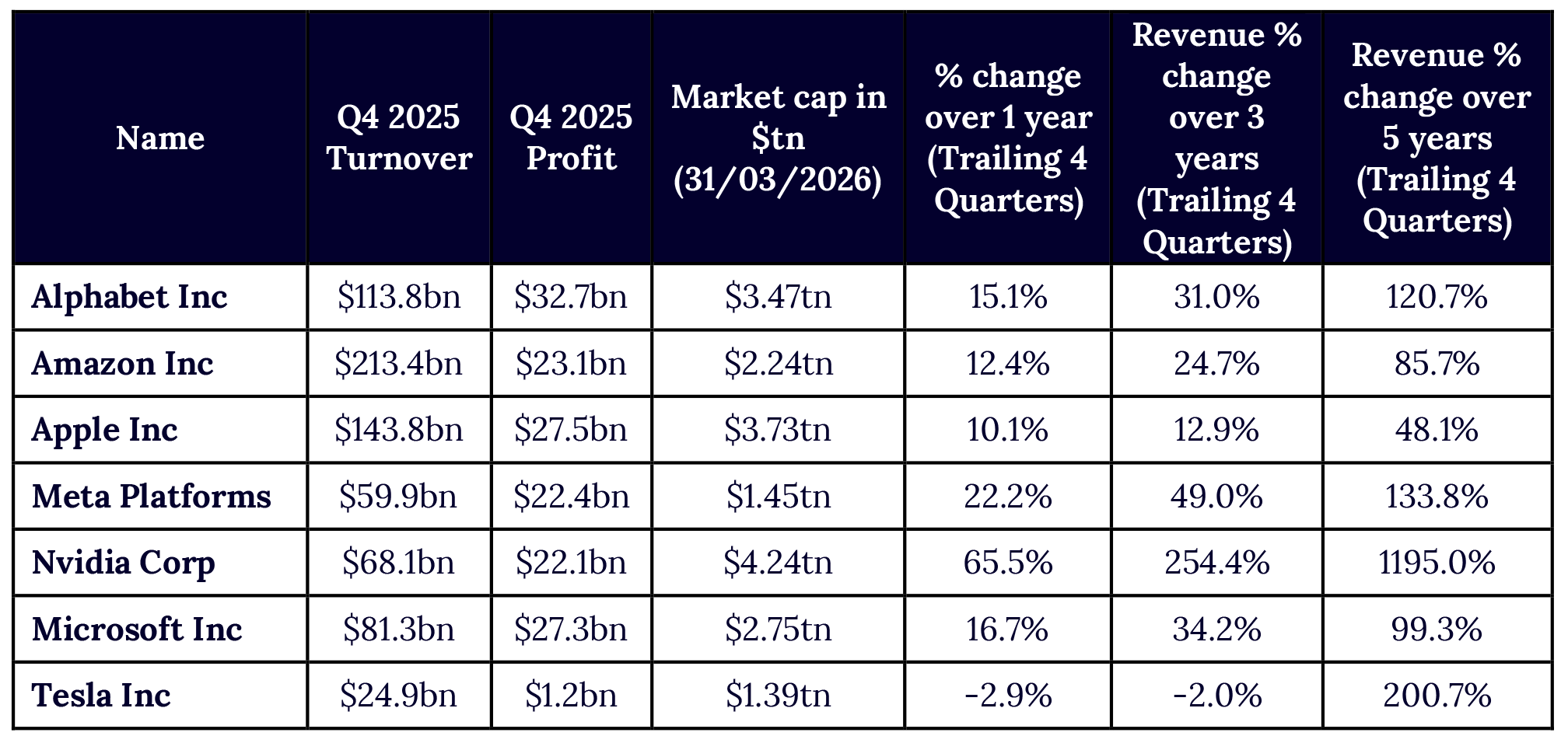 Technology stocks fell sharply in the first quarter, with the Nasdaq down 7% and most of the Magnificent 7 underperforming, led by a near 25% decline in Microsoft. Unlike last year’s recovery after a weak start, a similar rebound in 2026 appears less certain. The sharpest falls were in software and services, where AI is expected to disrupt existing business models.